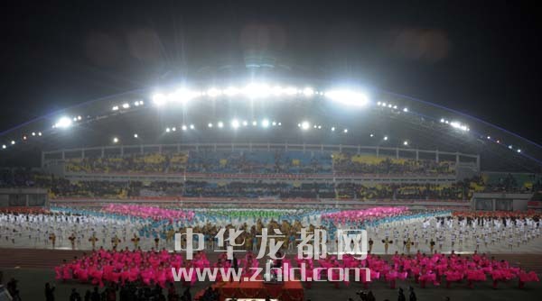 在開幕式大型文體表演《龍騰盛世·周口頌歌》中,5000余名演員為現(xiàn)場(chǎng)觀眾奉獻(xiàn)了一場(chǎng)極具濃郁周口特色的文藝演出,集中展示了我市深厚的歷史積淀、厚重的文化底蘊(yùn)及現(xiàn)代農(nóng)業(yè)發(fā)展的壯麗篇章和科學(xué)發(fā)展、共建和諧、實(shí)現(xiàn)富民強(qiáng)市的蓬勃生機(jī),讓現(xiàn)場(chǎng)觀眾享受了一次豐盛的文化盛宴。