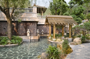 ????不同區(qū)域特色鮮明:在中式風(fēng)情區(qū),一條古典中式景觀長(zhǎng)廊,仿佛帶你穿越時(shí)空隧道,進(jìn)入中式的皇家園林,置身曲徑通幽,欣賞雕梁畫棟;在歐式風(fēng)情區(qū),融匯了歐式貴族庭院與田園派園林風(fēng)韻的歐式園藝風(fēng)情,溫泉池掩映于花卉叢中,私密溫馨;在泰式風(fēng)情區(qū),你則會(huì)看到大自然火山巖泉池和靜臥溫泉池邊的泰式?jīng)鐾ぁ送猓碛袆?dòng)感十足的溫泉沖浪池,溫泉水療按摩設(shè)施,你可以盡享悠然世外,人水合一的浪漫寫意。