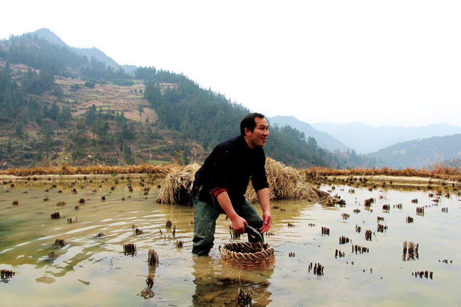 ????在雷山苗寨,有一道必不可少的春節(jié)菜肴,叫做“凍魚”。春節(jié)前夕,西江苗寨阿才到自家的田里捕魚,為家人準(zhǔn)備春節(jié)大餐。