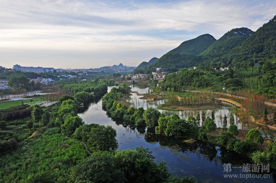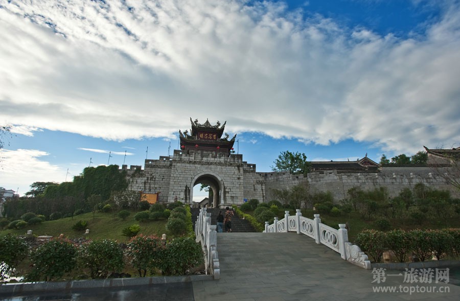 ????青巖古鎮(zhèn),貴州四大古鎮(zhèn)之一,位于貴陽市南郊,建于明洪武十年(1378年),原為軍事要塞 。古鎮(zhèn)內(nèi)設(shè)計精巧、工藝精湛的明清古建筑交錯密布,寺廟、樓閣畫棟雕梁、飛角重檐相間。鎮(zhèn)人文薈萃,有歷史名人周漁璜、清末狀元趙以炯(貴州歷史上第一個文狀元)。鎮(zhèn)內(nèi)有近代史上震驚中外的青巖教案遺址、趙狀元府第、平剛先生故居、紅軍長征作戰(zhàn)指揮部等歷史文物。周恩來的父親、鄧穎超的母親、李克農(nóng)等革命前輩及其家屬均在青巖秘密居住過。第九屆貴州旅游產(chǎn)業(yè)發(fā)展大會將于2014年8月15日上午在貴陽青巖古鎮(zhèn)南門主會場召開。