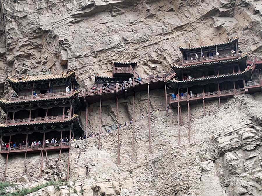 ????懸空寺又名玄空寺,坐落在山西省渾源縣,是中國僅存的佛、道、儒“三教合一”的獨特寺廟。懸空寺始建于1400多年前的北魏王朝后期,歷代王朝都對懸空寺作過修繕,北魏王朝將道家的道壇從平城(今大同)南移到此。古代漢族工匠根據(jù)道家不聞雞鳴犬吠之聲的要求重建了懸空寺,是各族勞動人民傾注了無窮智慧才建成這一集建筑學、力學、美學、宗教學為一體的偉大建筑,懸空寺是中國古代建筑精華的集中體現(xiàn)。