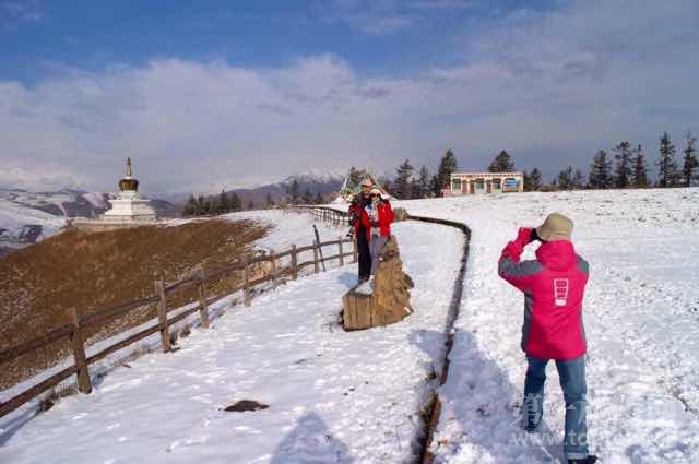 ????游客在青海省海北藏族自治州“天境祁連”賞雪、拍雪、玩雪。這也預(yù)示著青海即將進(jìn)入冬季旅游模式。