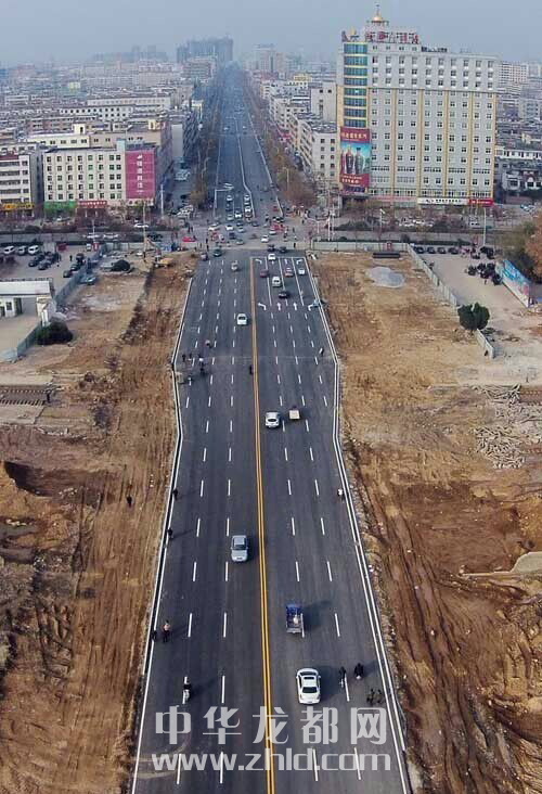 ???????昨天,周口晚報“周晚一號”航拍飛行器拍攝的打通后的八一大道。晚報記者 朱海龍 攝