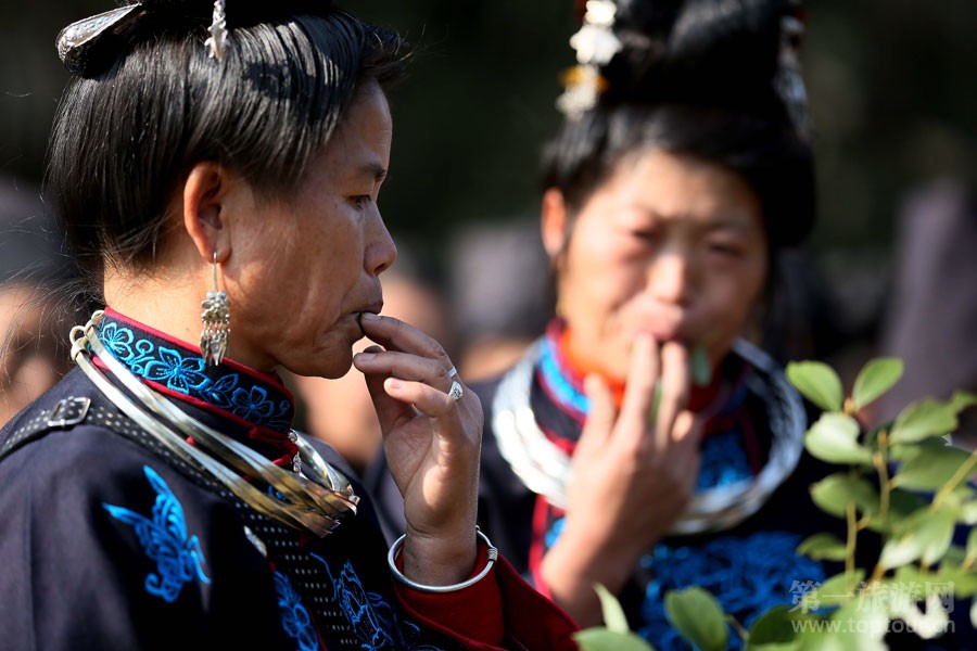 ????2014年12月8日,是貴州省丹寨縣揚(yáng)武鎮(zhèn)楊頌村一年一度的苗族祭尤節(jié),當(dāng)日,來自周邊村寨的苗族村民們身著盛裝歡聚一堂,舉行隆重的祭祀儀式,祭祀苗族先祖。并以跳蘆笙舞、唱苗歌的方式歡度這一古老的苗族節(jié)日?!凹烙裙?jié)”苗語叫“農(nóng)尤”,“農(nóng)”意為吃或祭,“尤”為人名,即苗族九黎部落的首領(lǐng)蚩尤。 “祭尤節(jié)”在2007年入選為貴州省第二批非物質(zhì)文化遺產(chǎn)名錄。