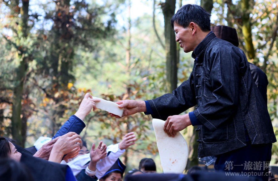 ????祭師在祭尤節(jié)祭祀儀式上分發(fā)祭品