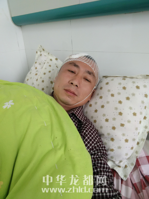 ???????醫(yī)生經(jīng)檢查發(fā)現(xiàn),胡效杰的頭部有3個(gè)傷口。當(dāng)日上午,記者來到商水縣人民醫(yī)院,看到胡效杰的頭上纏著紗布,躺在病床上輸液(如圖)。