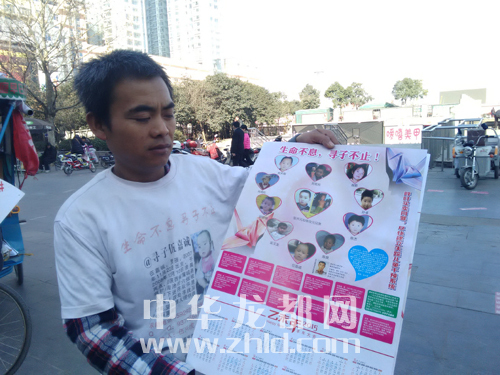 ???????伍興虎來到周口后,得到了“寶貝回家”周口志愿者的熱情幫助。有助人尋親“超速度”美稱的丁超,把伍興虎及其兒子的情況及時發(fā)布到網(wǎng)上,并積極聯(lián)系我市的其他志愿者為伍興虎提供力所能及的幫助。當(dāng)日,“寶貝回家”周口志愿者化紅等人還專程趕到五一廣場,協(xié)助伍興虎發(fā)放宣傳資料。