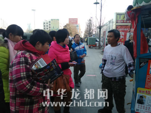???????“寶貝回家”周口志愿者協(xié)助伍興虎(右二)發(fā)宣傳資料