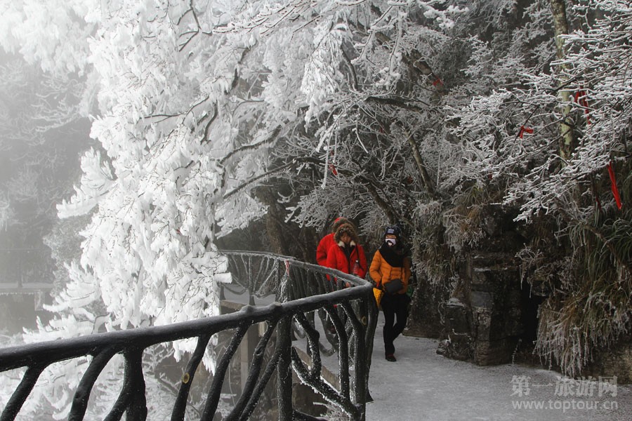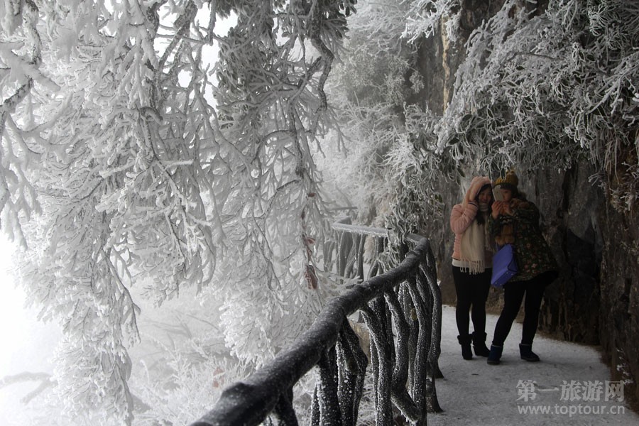 ????張家界天門山頂飄起了零星雪花,迎來新年寒潮后的首場雪。山頂布滿了玲瓏剔透的霧凇、冰花,游道也鋪了一層薄薄的積雪,踩在上面咯吱作響,整座大山瞬間變成了一個夢幻童話世界。每年冬季都有很多“冰雪粉絲”專程來天門山看雪,今年也不例外。近幾日,隨著氣溫持續(xù)走低,每天都有不少游客前往天門山等雪。隨著賞雪游客的逐日增多,天門山景區(qū)加大游道除冰防滑工作,同時增加景區(qū)安全巡視力度,確保游客游覽安全。據(jù)天氣預報顯示,未來幾天張家界地區(qū)將持續(xù)低溫雨雪天氣,天門山預計也將迎來更大的雪。天門山景區(qū)提示:雨雪天氣,天門山索道照常運行,山頂玻璃棧道、森林觀光纜車雨雪天氣關閉,請游客朋友合理安排游程。
