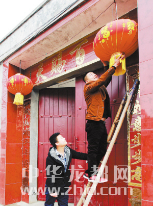 貼對(duì)聯(lián),掛燈籠,喜迎新春。 (記者 王映 攝)