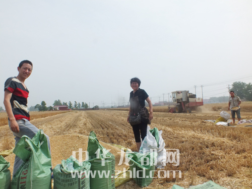 ??? 昨日,鄲城縣小麥?zhǔn)崭罾_序幕。圖為該縣城郊鄉(xiāng)小麥?zhǔn)崭瞵F(xiàn)場。(記者 盧好亮 通訊員 孫守功 攝)