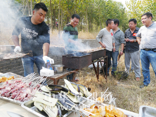 12時(shí)許,微友來到周口文昌生態(tài)園。活動(dòng)贊助方——味好西餐咖啡商貿(mào)有限公司、戶外主題餐廳、人民公社大食堂早已準(zhǔn)備好肉類、蔬菜、水果、飲料等等,一場燒烤“盛裝登場”。