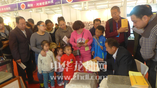 ????10月16日至19日,第二屆中原(鶴壁)文化產(chǎn)業(yè)博覽交易會(huì)在鶴壁市會(huì)展中心舉行,周口華威民俗文化博物苑參展有歷代石刻拓片、漢畫拓片、漢畫冊(cè)頁(yè)、漢畫長(zhǎng)卷等多種文創(chuàng)產(chǎn)品,并現(xiàn)場(chǎng)演示了拓片制作工藝,受到與會(huì)人員的歡迎。圖為參會(huì)情景。 記者 劉彥章 攝