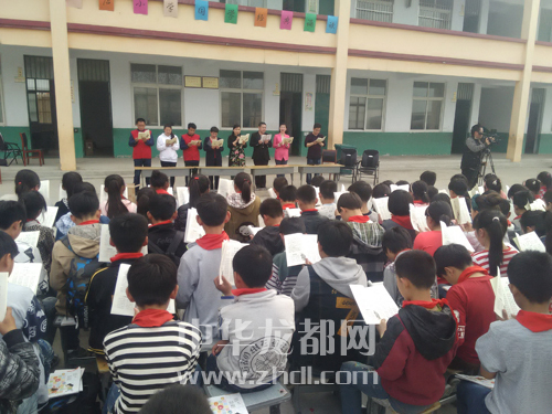 ????4月1日下午,川匯區(qū)石店小學(xué)的160多名學(xué)生跟隨我市國學(xué)經(jīng)典誦讀志愿者一起朗讀《弟子規(guī)》,朗朗讀書聲響徹整個校園。晚報記者 張燕 攝