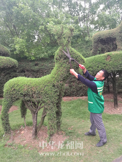 ????在市人民公園,周口晚報(bào)記者見到王廷林時(shí),他正在拿著剪刀給樹木修剪枝條。經(jīng)過(guò)他的修剪,園里的樹木呈現(xiàn)出各種形態(tài):“花瓶”、“孔雀”、“駿馬”……形態(tài)各異的造型中,一棵“二龍戲珠”的景觀樹,視覺效果極佳,這是王廷林的得意之作。