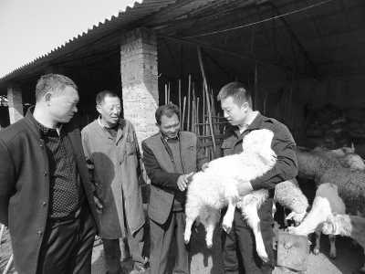 ?????2月29日,榮獲河南省十佳“村官”的商水縣鄧城鎮(zhèn)大學(xué)生“村官”、許村第一書記張耀(右一)在自己創(chuàng)辦的養(yǎng)羊場向養(yǎng)羊戶傳授養(yǎng)羊技術(shù)。近兩年,在張耀免費提供技術(shù)、優(yōu)惠價提供種羊、負責(zé)銷售等幫助下,楊灣、吳灣、楊河、許村等行政村的300多戶群眾也通過發(fā)展養(yǎng)羊走上了致富之路。 喬連軍攝