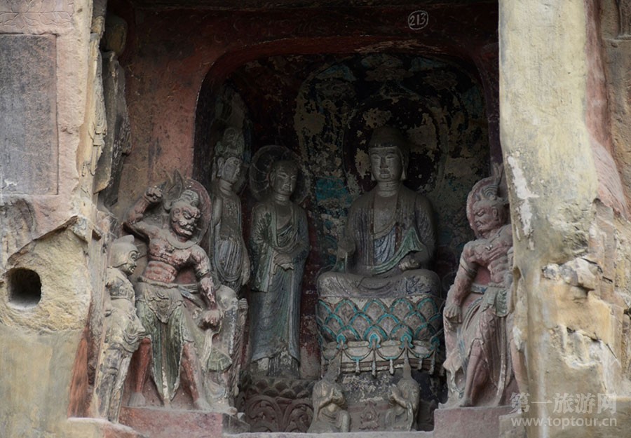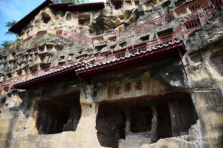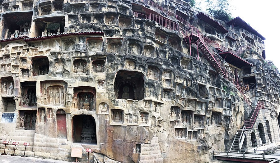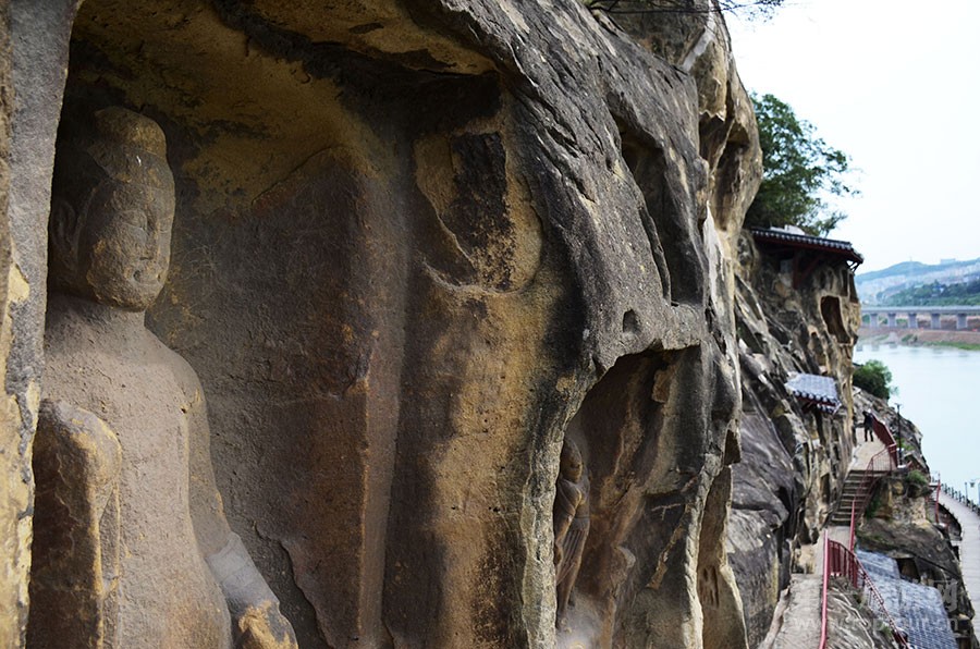 ????廣元千佛崖是四川境內(nèi)規(guī)模最大的石窟群,摩崖造像始于北魏時(shí)期,歷經(jīng)了近1500年,在高45米,南北長200多米的峭壁上,布滿了造像龕窟,重重疊疊13層,密如蜂房。