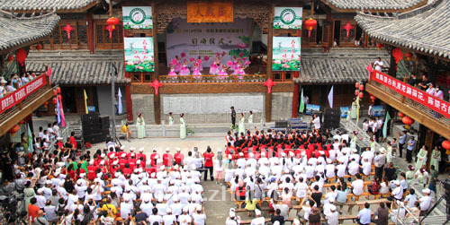 ????2016中國(guó)·淮陽(yáng)龍湖賞荷旅游月活動(dòng)除舉行開(kāi)幕式(如圖)外,其間還將舉行周口市第三屆“龍湖杯”旅游形象大使選拔賽、“清風(fēng)荷韻”書畫名家作品展及“微腐敗治理”廉政征文活動(dòng)、首屆淮陽(yáng)沙窩西瓜節(jié)、國(guó)家濕地公園龍湖龍舟賽、千人共行“中華成人禮”及花卉盆景展等7項(xiàng)系列主題活動(dòng)。