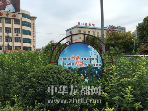 五一文化廣場綠化帶內的公益廣告宣傳牌