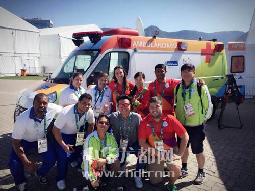 ????在里約奧運(yùn)村運(yùn)動(dòng)員訓(xùn)練區(qū),陳滕與同伴負(fù)責(zé)6個(gè)場館30個(gè)大小項(xiàng)目的醫(yī)療急救護(hù)理轉(zhuǎn)運(yùn)、醫(yī)療站外語交流、協(xié)助搬運(yùn)患者、協(xié)助錄入場館內(nèi)所有醫(yī)療服務(wù)信息等工作。