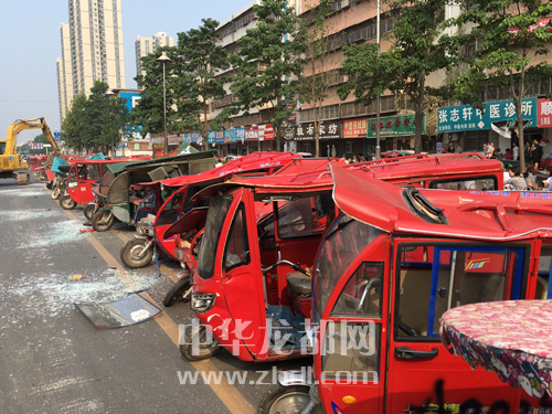 ????9月7日,百余輛三輪車在中心城區(qū)七一路上被統(tǒng)一銷毀。這些被銷毀的三輪車都是市交警部門在中心城區(qū)查扣的非法營運(yùn)三輪車。晚報(bào)記者 朱東一 攝