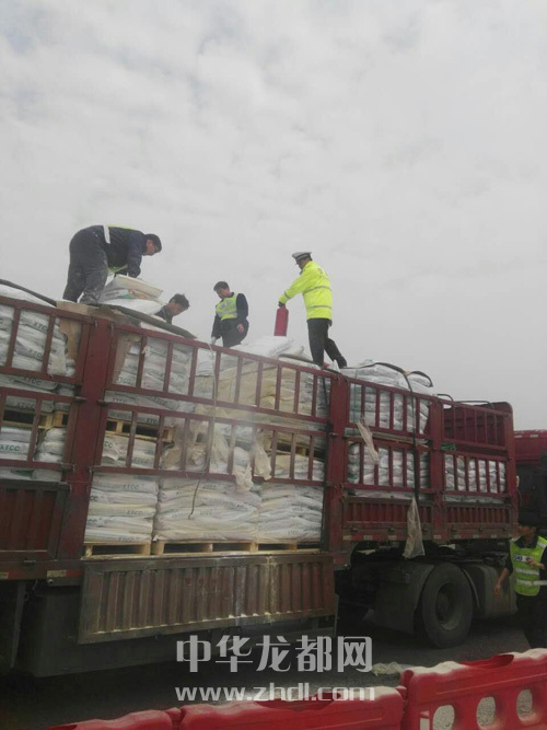 ????接到求助后,4位高速交警迅速趕往現(xiàn)場,并在第一時間把警情匯報給高速指揮中心。隨后,中隊長杜金濤帶領(lǐng)所有執(zhí)勤民警全員參與救援。他們一邊設(shè)置警示區(qū)域,疏散圍觀群眾,一邊通知收費站和高速路政人員暫時禁止車輛駛?cè)耄乐勾紊鹿拾l(fā)生。