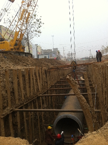 2014年2月4日17時(shí)許,該管道回拖完成,這標(biāo)志著此次配套工程中技術(shù)含量最高、 難度最大的河南省水利史上首個(gè)定向鉆穿越河道工程精彩完成。
