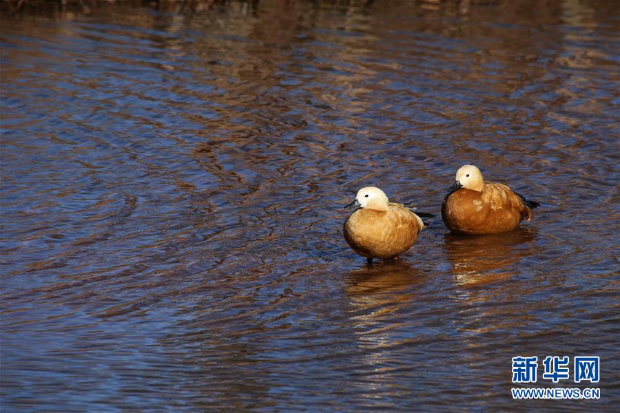 ????1月18日,兩只赤麻鴨在念湖水面休息。新華社記者 陳海寧 攝