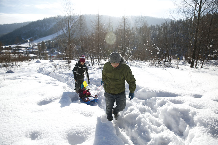 ????父母帶著孩子滑爬犁
