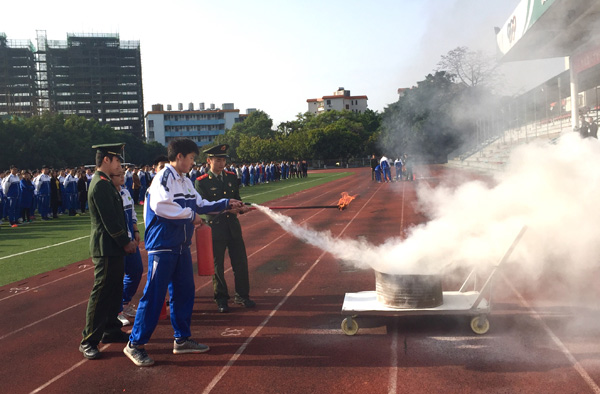 消防應(yīng)急演練結(jié)束后,消防官兵向全體師生現(xiàn)場(chǎng)講解如何使用滅火器,并由學(xué)生代表實(shí)際操作滅火器撲救初期火災(zāi),升旗儀式上還進(jìn)行了法制安全教育。