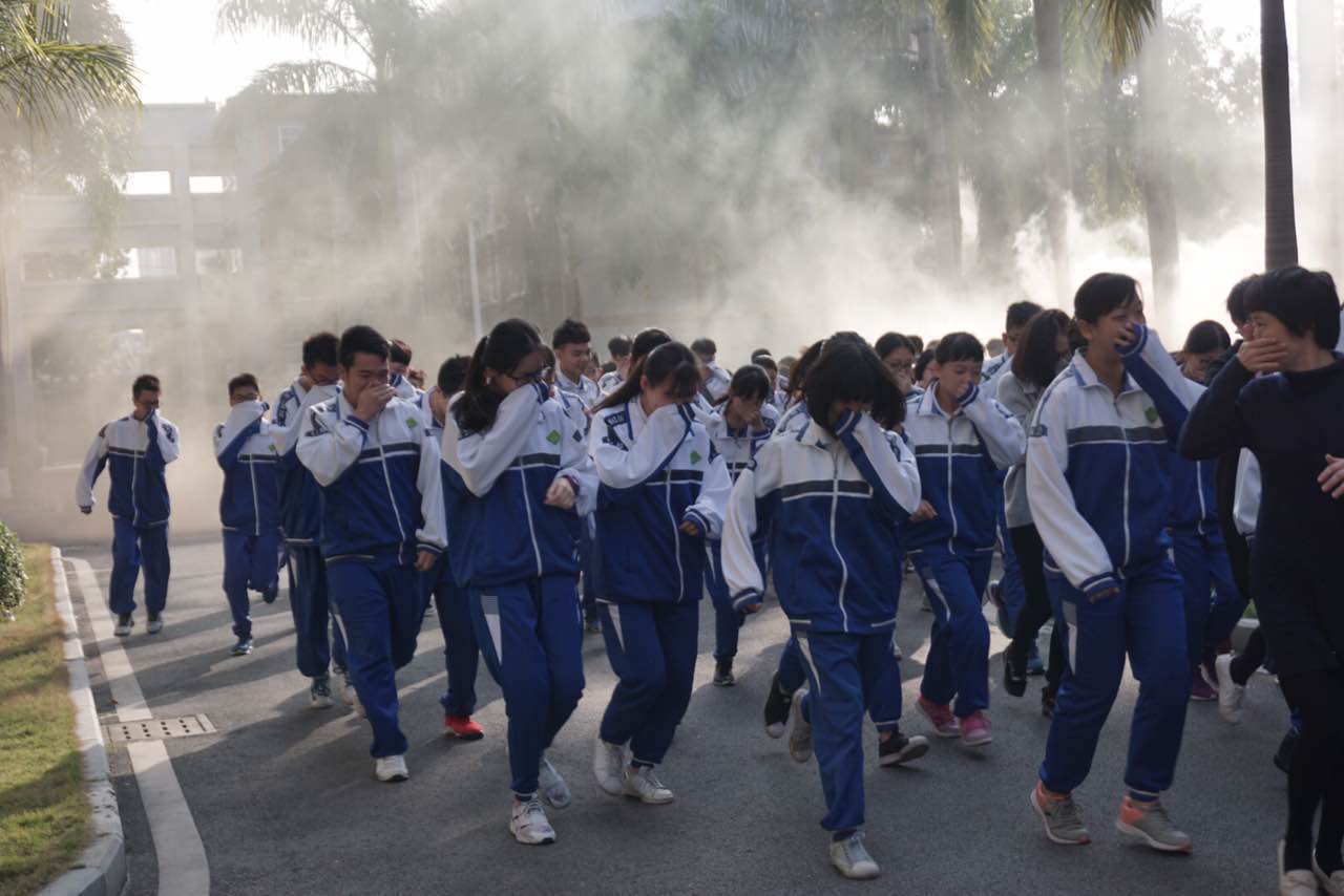 廣州市高中今天正式開(kāi)學(xué)。廣州市第八十中學(xué)開(kāi)學(xué)第一天的升旗儀式是在濃煙和警報(bào)聲中開(kāi)始的。 6日早上九點(diǎn),學(xué)生們剛剛結(jié)束“安全教育第一課”的理論學(xué)習(xí),一場(chǎng)消防應(yīng)急演練實(shí)操就開(kāi)始了。警報(bào)一拉響,老師便迅速組織學(xué)生進(jìn)行疏散逃生,學(xué)生們捂住口鼻,弓下身子,有序地沖出教室。五分鐘內(nèi),全體師生都順利疏散到操場(chǎng)上集合完畢。 將校園安全放在十分重要的位置,已經(jīng)成為很多學(xué)校的常態(tài),但把安全教育和消防演習(xí)作為“開(kāi)學(xué)第一課”的內(nèi)容尚屬首次。校長(zhǎng)袁閩湘表示,廣州市第八十中學(xué)地處流溪河畔,105國(guó)道從校門口穿過(guò),屬于典型的城鄉(xiāng)結(jié)合部學(xué)校,交通、防溺水、防火等安全教育和管理壓力較大。