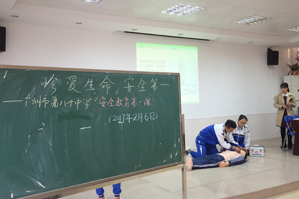 在學(xué)術(shù)報(bào)告廳內(nèi),老師為學(xué)生講解校園安全知識(shí),并由三位代表學(xué)生現(xiàn)場(chǎng)演示如何為溺水后的學(xué)生進(jìn)行心肺復(fù)蘇。全校近2000位學(xué)生和老師在現(xiàn)場(chǎng)或者通過(guò)班級(jí)內(nèi)的視頻直播觀看學(xué)習(xí)。高二(4)班學(xué)生鐘靜文表示,比起以前的班會(huì)課,這次的“安全教育第一課”將講解和演練相結(jié)合,能更直觀地學(xué)習(xí)到消防知識(shí)。 此外,廣州市各高中都利用開(kāi)學(xué)禮、班會(huì)課、課堂教學(xué)、專題講座、應(yīng)急疏散演練等方式開(kāi)展“安全教育第一課”。在廣州市第六中學(xué),場(chǎng)景模擬和應(yīng)急疏散等方式讓學(xué)生接受了一場(chǎng)別開(kāi)生面的安全教育。 “過(guò)年了,我來(lái)給爸媽炸個(gè)油角吧!”一名男生得意洋洋地當(dāng)起了“廚神”,卻被濺起的油星燙傷了手背?!鞍パ剑詫O!燙傷了!趕緊抹醬油吧!這個(gè)土方法最管用了!”男生的“奶奶”忙不迭地說(shuō)。逗趣的演繹讓全班人樂(lè)不可支。一名男生說(shuō)出了正確的方法:“用流動(dòng)的冷水沖洗燙傷部位最少10分鐘,情況嚴(yán)重時(shí)需送醫(yī)院治療。不要涂抹油脂藥膏等物品,因?yàn)橛椭瑫?huì)阻止熱量散發(fā),使?fàn)C傷更嚴(yán)重。在燒燙傷處涂抹膏藥,是后續(xù)治療時(shí)采取的。”除了燒燙傷的應(yīng)急處理外,學(xué)生們還現(xiàn)場(chǎng)演繹了食物中毒、異物入眼、關(guān)節(jié)扭傷、魚(yú)刺梗喉等意外事件的緊急處理誤區(qū),并認(rèn)真學(xué)習(xí)了正確的處理辦法。 據(jù)悉,“安全教育第一課”還將延續(xù)到全市中小學(xué)(2月13日開(kāi)學(xué))、中職學(xué)校(2月20日開(kāi)學(xué))。目前,廣州市教育部門創(chuàng)新學(xué)校安全教育新途徑、新方法,完善學(xué)校安全教育工作機(jī)制,并建立了安全教育信息化平臺(tái)。截止至目前,全市已有3172所學(xué)校全部開(kāi)設(shè)安全教育課程,42473位老師參與授課,140多萬(wàn)名學(xué)生和家長(zhǎng)參與在線學(xué)習(xí)。 |