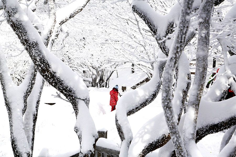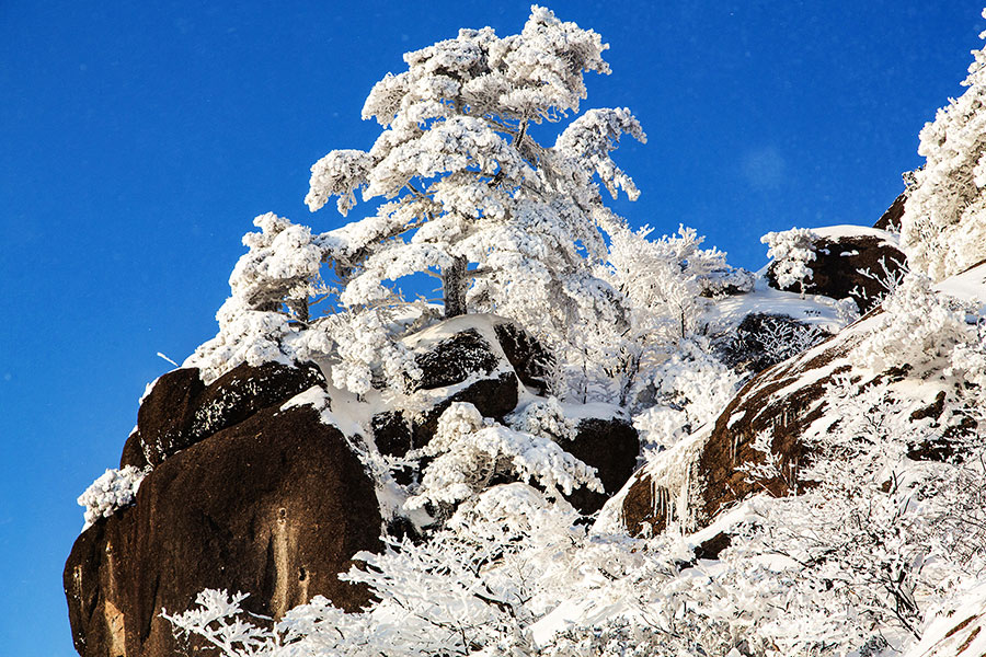 ????黃山以奇松、怪石、云海、溫泉、冬雪著稱于世。雪后黃山,山上、樹上、石階上睡滿了雪花,譽為“人間仙境”的黃山在雪的襯托下,處處銀裝素裹、端莊輕靈;玉樹瓊枝,滿目瓊樓玉宇。(方立華)