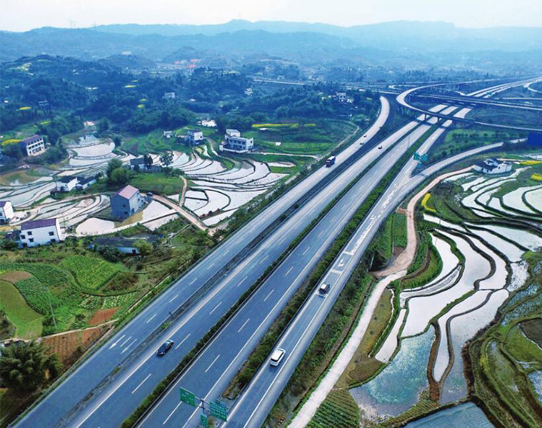 ????近年來,四川省瀘州市依托“兩縱兩橫兩聯(lián)”高速公路網(wǎng),建成全國重要區(qū)域性綜合交通樞紐體系,聯(lián)通成都、重慶、宜賓、遵義、畢節(jié)、昭通等西南出海高速路網(wǎng),暢通西南富民大通道,讓昔日關(guān)隘溝壑變通途。圖為2月27日,瀘州市納溪區(qū)白鶴林高速立交橋,與周邊鄉(xiāng)村田園錯落有致,形成春天的別樣畫卷。楊濤/攝