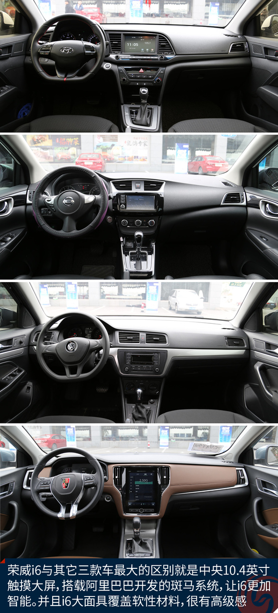 榮威i6內飾軟包比例達到80%,能摸到的地方幾乎都采用了軟性材料,舒適溫馨的車內氛圍也是家庭用戶非??粗氐摹s威i6內飾最大亮點在于10.4英寸的中控屏和和7英寸液晶儀表盤,讓科技感和豪華感超越了另外三款合資車型。相比榮威i6來說,它們的內飾過于老套了。同樣i6的做工也絲毫沒有遜色于對手,在內飾有機物揮發(fā)指標上遠低于國家車內空氣質量標準水平。