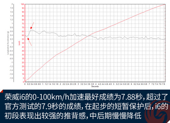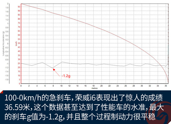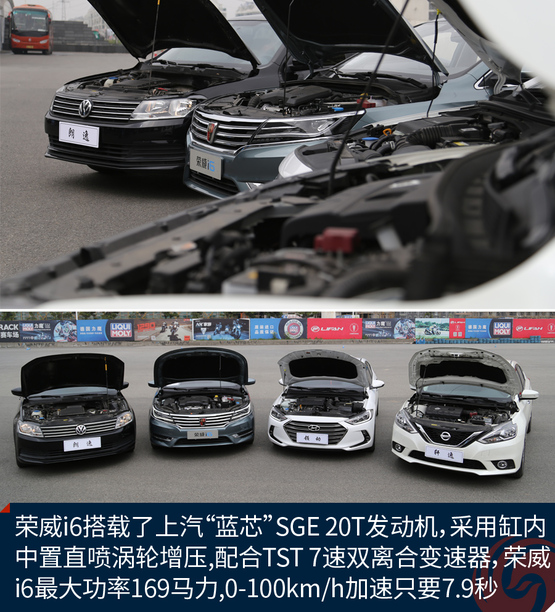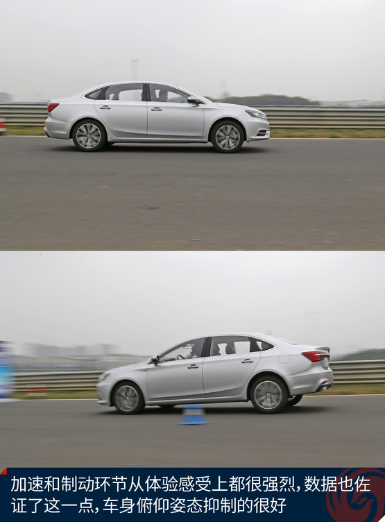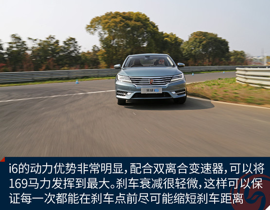 在動力方面,榮威i6搭載了上汽“藍芯”SGE 20T發(fā)動機,采用缸內中置直噴渦輪增壓、高效氣門配氣機構等國際領先技術,配合TST 7速雙離合變速器,榮威i6最大功率169馬力,比朗逸、軒逸和領動分別高出了59馬力、43馬力、39馬力。而實際測試中也證實了這一點,榮威i6在加速和剎車方面確實領先于競品車型。7.88秒的0-100km/h的加速成績確實讓人大吃一驚,榮威i6表現出了極高的運動化調教。剎車方面,榮威i6也表現相當出色,36.59米的剎車距離,可以跟一些性能車相提并論。300mm的通風剎車片功不可沒,整個制動過程有力平穩(wěn),車身懸掛對于點頭的抑制也很到位。