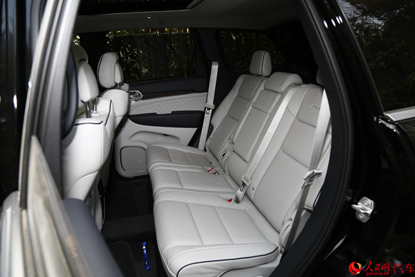進入車內,“全新大切諾基”車頂、門板內飾、中控臺等17處均有真皮包裹,盡顯奢華。首次新增的Laguna真皮座椅選用Semi-Aniline頭層牛皮,皮質緊實完整,觸感柔軟細膩,帶來視覺及乘坐的雙重享受。