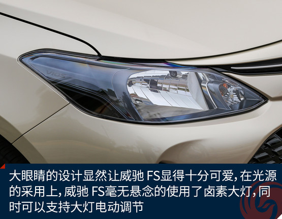 從外觀上我們也不難看出,威馳 FS與威馳一脈相承,正面看,甚至看不出兩車的差別,豐田最新的keen look設(shè)計(jì)讓車輛呈現(xiàn)出一種完全不同的年輕姿態(tài),當(dāng)然這也是目前豐田整個(gè)車系的主要設(shè)計(jì)語(yǔ)言,就是要讓車輛更顯年輕運(yùn)動(dòng)。大嘴的設(shè)計(jì)讓威馳 FS頗顯得有些頑皮,而且在這張大嘴中還隱藏了許多四邊型的裝飾塊,在大嘴兩側(cè)是兩道裝飾性的“八字胡”,除此之外是一雙大大的眼睛,這一副調(diào)皮可愛的模樣,相信不少年輕人都會(huì)喜歡。