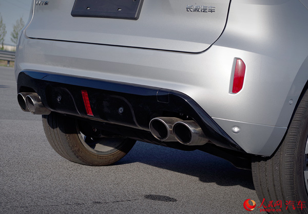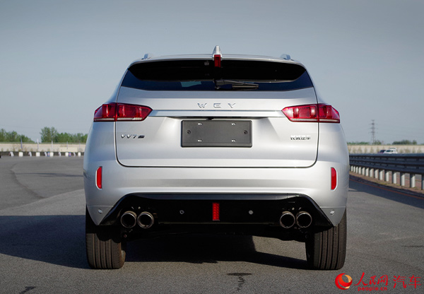 在車尾,VV7s有著一眼就被人關注的四出式排氣,而且都很粗壯,在中國品牌中屬于獨一份。VV7c采用雙邊的矩形排氣樣式,視覺效果上稍顯收斂但是也足夠有面子了。后窗被設計得比較窄,其原因是為了照顧到溜背的外形設計。也正是因此,WEY品牌給它配備了流媒體后視鏡。