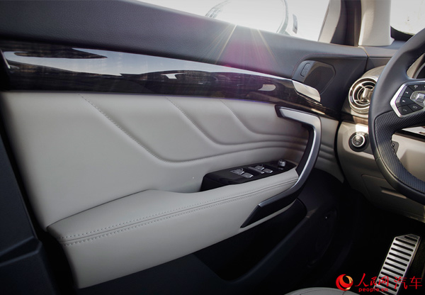 再細看VV7的內(nèi)飾做工與用料,能發(fā)覺它確實很用心。不僅中控臺質(zhì)感不錯,在車門板內(nèi)側(cè)各處也采用了材質(zhì)細膩的皮質(zhì)包裹層,門把手、按鍵都透露出精致感。WEY這款方向盤非常粗壯,包裹的皮質(zhì)手感很好,不過按鍵的布局和標注并不能讓你一下就明白操作,需要適應。