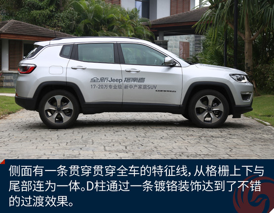 全新指南者的外觀,在諜照之初就有不少人把它和大切諾基聯(lián)系在一起,七孔的經(jīng)典格柵變得有些扁平,跟全新設(shè)計的大燈完美的融合在一起,下方寬大的黑色下格柵將視覺中心上移,讓指南者看起來更高大威猛。這些小的細節(jié)都與Jeep的旗艦車型大切諾基有所神似。而這樣的產(chǎn)品標(biāo)簽也讓指南者變得身價倍增,反觀側(cè)面指南者有一條貫穿貫穿全車的特征線,從格柵上下與尾部連為一體。D柱的處理也有自己的特色,通過一條車頂?shù)腻冦t裝飾達到了不錯的過渡效果。尾部就讓指南者自身的特征變得更加明顯,也不那么大切了起來。LED燈帶狀的尾燈,讓尾部的造型鮮活起來,圓潤的車尾讓陽剛的車頭,多了一點柔和的色彩??赡芤灿∽C了那句話,“男人不止一面”。全新指南者車身尺寸4415*1819*1625毫米,軸距2636mm,車身尺寸并不大,但是內(nèi)部空間卻不錯。對于新指南者來說,大切的標(biāo)簽很重要,它代表了純正的血統(tǒng),同時它也不僅僅這一個標(biāo)簽,它還有屬于自己的個性化色彩,一輛城市化SUV的氣質(zhì)。