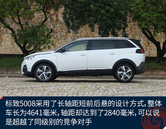 和市面上的一些7座SUV不同,標(biāo)致5008采用了長(zhǎng)軸距短前后懸的設(shè)計(jì)方式,這樣的設(shè)計(jì)更多的出現(xiàn)在運(yùn)動(dòng)派車(chē)型上。標(biāo)致5008的整體車(chē)長(zhǎng)為4641毫米,軸距卻達(dá)到了2840毫米,可以說(shuō)是超越了同級(jí)別的競(jìng)爭(zhēng)對(duì)手。