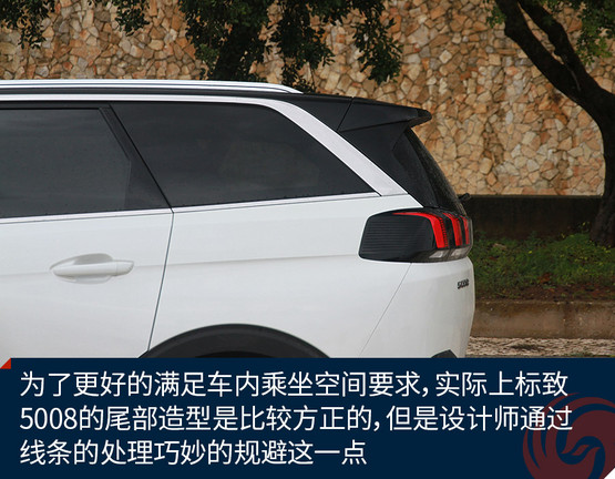 為了更好的滿(mǎn)足車(chē)內(nèi)乘坐空間要求,實(shí)際上標(biāo)致5008的尾部造型是比較方正的,但是設(shè)計(jì)師通過(guò)線(xiàn)條的處理巧妙的規(guī)避這一點(diǎn)。側(cè)窗鍍鉻裝飾在尾部快速下滑與尾燈相連接,上面后窗的部分則用黑色處理,使得標(biāo)致5008的視覺(jué)效果仍然充滿(mǎn)動(dòng)感,同時(shí)還保留了第三排空間的實(shí)用性。