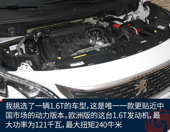 所以我挑選了一輛1.6T的車(chē)型,這是唯一一款更貼近中國(guó)市場(chǎng)的動(dòng)力版本。歐洲版的這臺(tái)1.6T發(fā)動(dòng)機(jī),最大功率為121千瓦,最大扭矩240牛米,大概相當(dāng)于國(guó)內(nèi)標(biāo)致4008 1.6T的350THP版本。