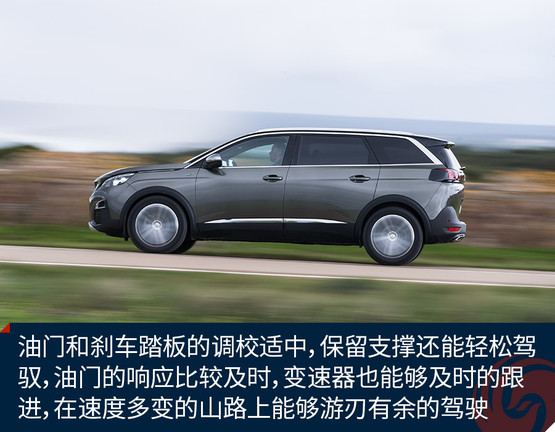 油門(mén)和剎車(chē)踏板的調(diào)校也如是,踏板腳感適中,保留支撐還能輕松駕馭,并不像多數(shù)歐系車(chē)那樣沉重。油門(mén)的響應(yīng)比較及時(shí),變速器也能夠及時(shí)的跟進(jìn),在速度多變的山路上能夠游刃有余的駕駛。唯一的問(wèn)題是低功率的1.6T在動(dòng)力上沒(méi)有突出的表現(xiàn),尤其在上坡時(shí),加速會(huì)稍感吃力,但是想到這事一款家用SUV,這也就不是問(wèn)題了。而且標(biāo)致5008在國(guó)內(nèi)的主力車(chē)型將會(huì)是1.8T版本,動(dòng)力還會(huì)再上一個(gè)臺(tái)階。