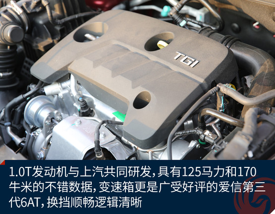 眼前這臺名爵ZS是1.0T 6AT車型,1.0T發(fā)動機與上汽共同研發(fā),具有125馬力和170牛米的不錯數(shù)據(jù),變速箱更是廣受好評的愛信第三代6AT,換擋順暢邏輯清晰。除此之外,低配車型還有1.5L發(fā)動機,與之搭配的是4速自動變速器和5速手動變速器。
