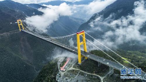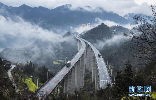 ????一場春雨過后,位于湖北省恩施土家族苗族自治州境內(nèi)的滬渝高速泗渡河大橋周圍云霧繚繞,宛如仙境。新華社發(fā)(文林 攝)