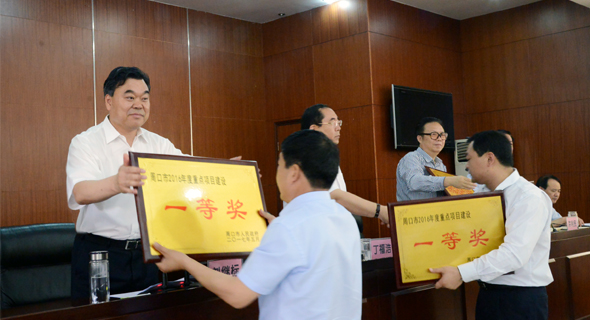 市領導劉繼標、丁福浩等為先進單位頒獎。記者 王映 攝