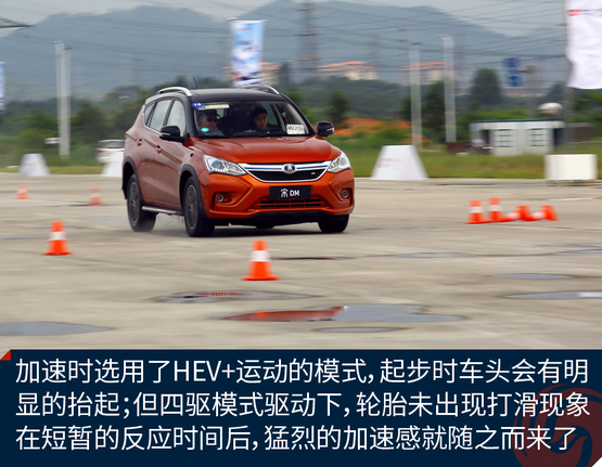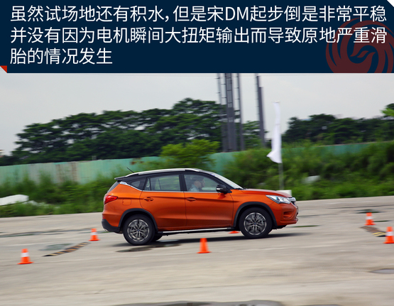 ????????為了充分體驗宋DM的加速能力,我們在試駕場地對其進行了試駕體驗。雖然試駕前一天下過雨,場地還有積水,但是宋DM起步倒是非常平穩(wěn)。并沒有因為電機瞬間大扭矩輸出而導(dǎo)致原地嚴重滑胎的情況發(fā)生。經(jīng)過分析,出現(xiàn)這種情況的原因可能是宋DM全系標(biāo)配了ESP車輛穩(wěn)態(tài)控制系統(tǒng),因此在起步時或者濕滑路面上行駛也能保證平穩(wěn);另一個原因是宋DM搭配了全時電四驅(qū),車輛前后軸上各搭載有電機,四輪驅(qū)動讓車輛的動力輸出更順暢和均衡。