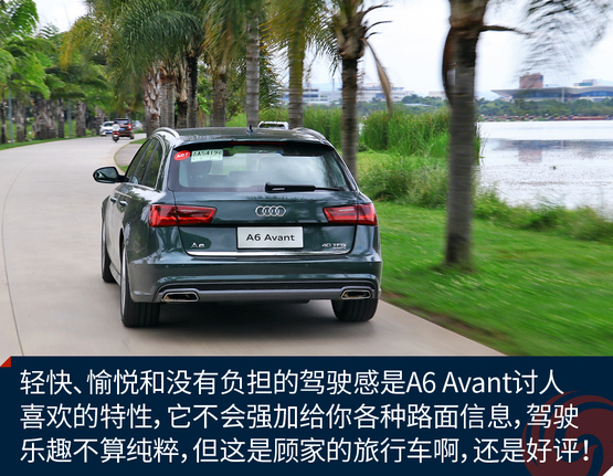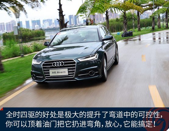 ????????作為原裝進口車,奧迪A6 Avant的底盤懸掛設定不像國產(chǎn)奧迪A6L那種偏向關(guān)照后排的VIP,再加上標配運動型懸掛縮減了懸掛行程,A6 Avant旅行車開起來明顯比A6L來的犀利和動感,我并不是說它像RS 6 Avant那樣有種讓人上癮而無法自拔的“毒力”,但作為一臺有著濃郁個人主義色彩又需要兼顧全家使用的車型,奧迪A6 Avant是那種該穩(wěn)就穩(wěn),要快也能快的理想設定。